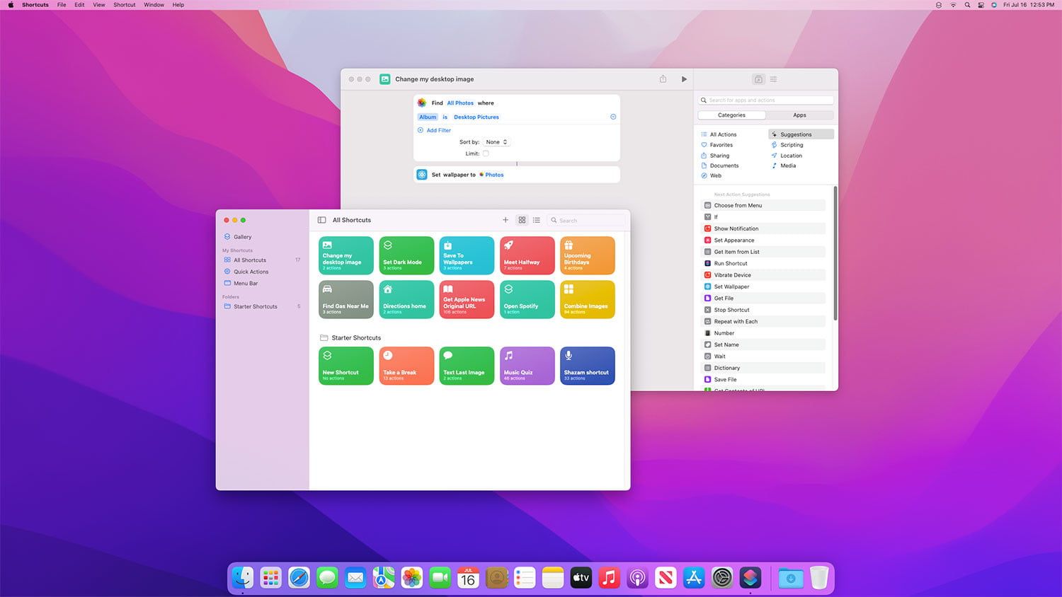 macOS Monterey also avails the Shortcuts app on your Mac. It lets you access any of your favorite shortcuts you already have or preinstalled ones like the “Shazam” shortcut or “Take a Break” on your iPad or iPhone through your Mac. There is also a Gallery of shortcuts where you can select Mac-specific shortcuts or create your desired ones using the Next Action Suggestions.